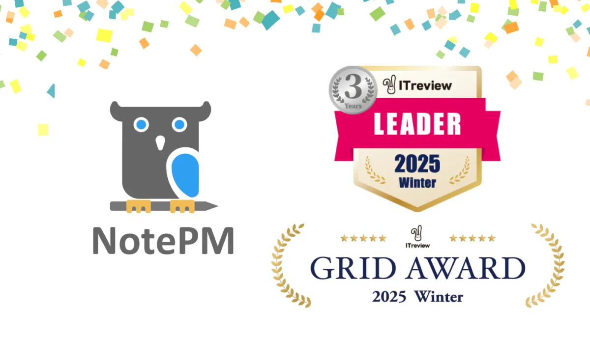 「ITreview Grid Award」は、IT製品レビューサイト「ITreview」において、投稿されたユーザーレビューを基にした独自の評価システムです。四半期毎にユーザーに支持された製品を表彰するこのアワードは、顧客満足度と市場の認知度を反映しています。これらの評価を元に、「NotePM」は複数の部門において高い評価を受けました。