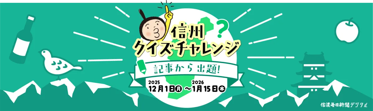 信濃毎日新聞デジタルが4周年を迎え、この喜びを共に分かち合うため、特別キャンペーン『信州クイズチャレンジ~記事から出題!~』がスタートします!今回は、信毎デジタルの記事を基にしたクイズに挑戦することで、信州の魅力を再発見しながら楽しむことができます。クイズに正解した信毎ID会員には、素晴らしいプレゼントも用意されています!