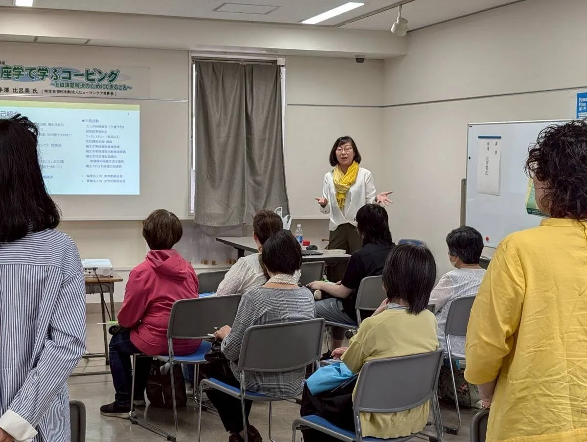 2025年5月25日、福生市にて「座学で学ぶコーピング」と題した講座が行われました。この講座は、地域住民や福祉関係者、ボランティアなど約20名が参加し、心の健康をテーマにした内容が提供されました。特定非営利活動法人ヒューマンケアの理事長である半澤比呂美氏が講師を務め、参加者にコミュニティーコーピングの意義を伝えました。