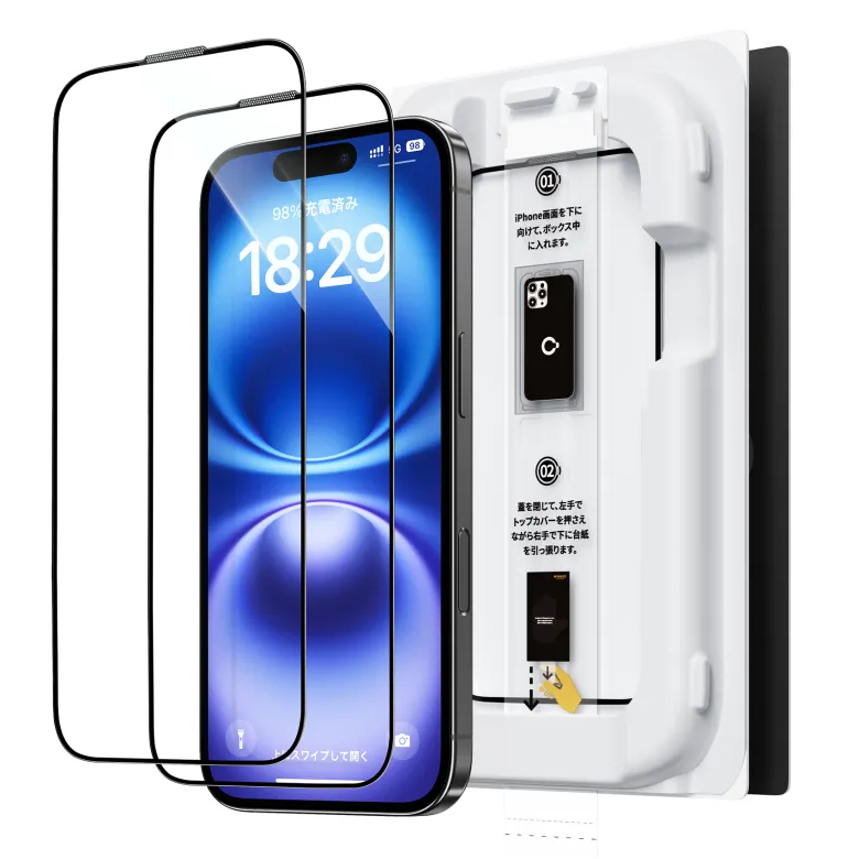- - 特徴: 新型ガイド枠を使用し、MIL規格準拠の9Hガラスが傷や衝撃から守ります。厚さ0.33mmで、タッチ感度も抜群です。