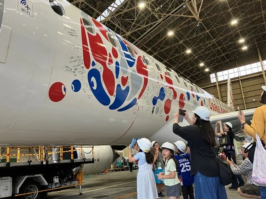 今回のさよならイベントは、小学生とその保護者を対象にした特別なプログラムでした。参加者の中には、未来を担う若い世代が多く含まれており、JALミャクミャクJETの機体への寄せ書きが行われました。小学生たちは、自分たちの夢や未来への願いを書き込むことで、特別な思い出を作りました。