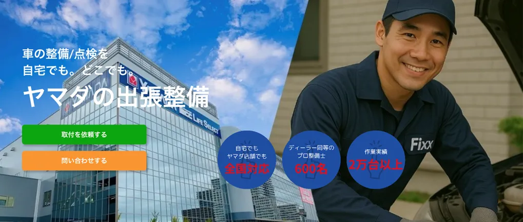 「ヤマダの出張整備」は、Fixxに在籍する約600名の整備士が的確にお客様の希望する場所で整備を行う画期的なシステムです。自宅や職場の近く、さらにはヤマダデンキの店舗や外出先など、さまざまな場所で利用可能です。この方式により、整備工場に車両を持ち込む手間や時間を大幅に削減でき、特に忙しい方々にとっては大変便利な選択肢となるでしょう。