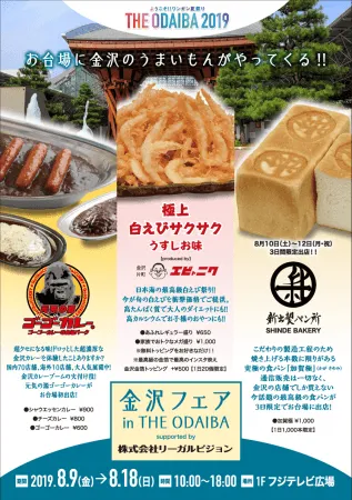 お台場のフジテレビで、2019年8月9日から8月18日までの10日間、「金沢フェア in THE ODAIBA」が開催されます。このイベントでは、金沢の美味しい食材や人気メニューを楽しむことができる絶好の機会です。特に注目されているのが、話題の幻の食パンや、金沢ならではの特産品です。