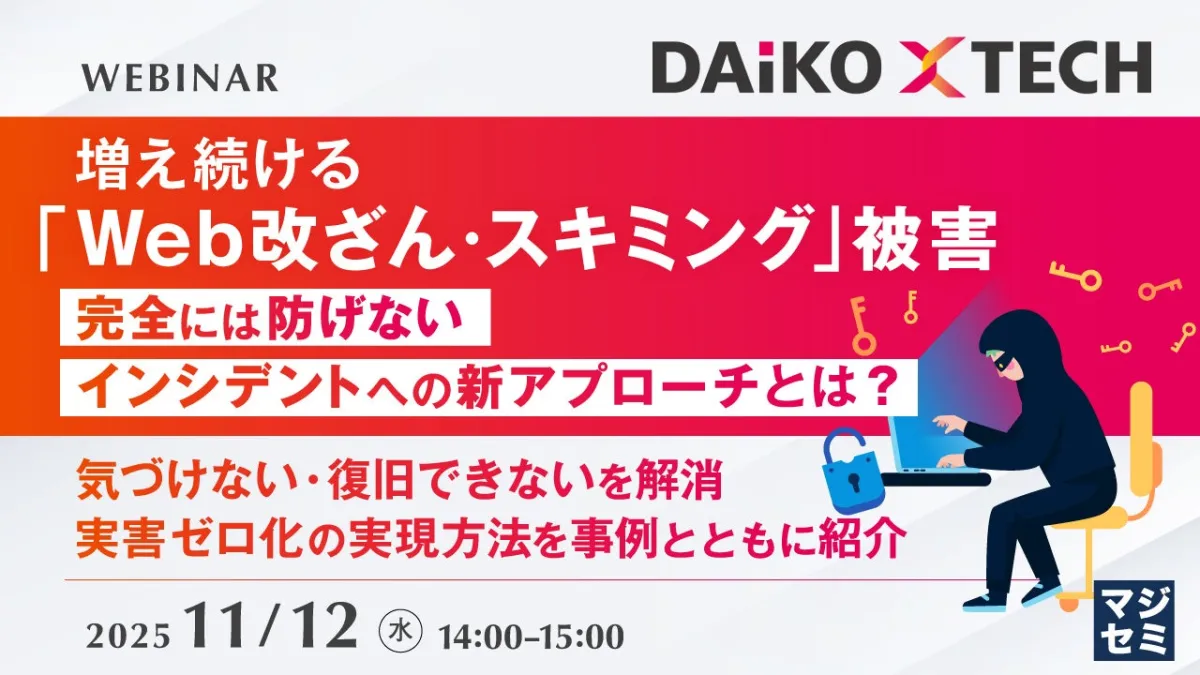 Webサイトの改ざんは企業にとって重大なリスクであり、迅速な検知と復旧がカギとなります。この新しいアプローチを学び、実害ゼロ化を目指したい方は、是非ご参加ください。ウェビナーの詳細や申込については、マジセミの公式ウェブサイトをご確認ください。