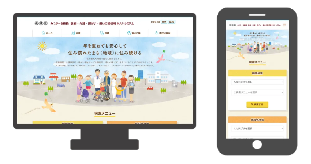 板橋区では、令和7年10月1日に新たに「みつかーる板橋医療・介護・障がい・通いの場情報MAPシステム」をリニューアルしました。このシステムは、地域の医療や介護、障がいサービスの情報を簡単に検索できる地図機能を搭載しています。