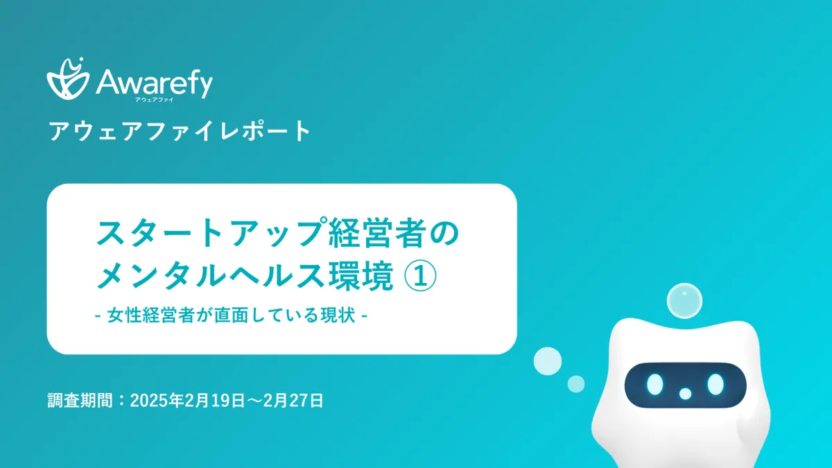 株式会社アウェアファイは、昨今のスタートアップ業界で厳しい環境に置かれている経営者のメンタルヘルスの実態を調査するため、2025年2月19日から27日にかけて匿名のオンラインアンケートを実施しました。調査は、ANRI株式会社をはじめとする6社のベンチャーキャピタルの協力を得て行われました。