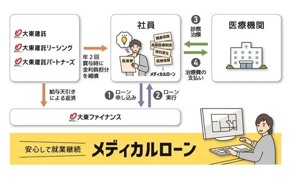大東建託株式会社とその関連企業である大東建託リーシング、大東建託パートナーズは、2023年10月から新たに社員向けの低金利融資制度「メディカルローン」を導入します。これは、社員が重大疾病などによって発生する高額な医療費を経済的に支援することを目的としており、人的資本経営の一環として位置づけられています。