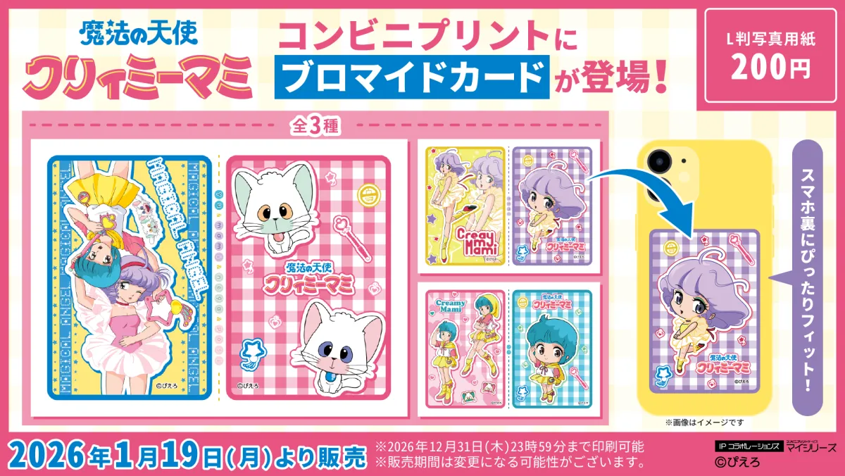 アニメ「魔法の天使クリィミーマミ」ファンに朗報です!新たに登場した「ブロマイドカード」が全国のコンビニで購入できることが決まりました。手軽に印刷できるこのブロマイドカードは、各200円(税込)で、選択式のデザインが多様に用意されています。
