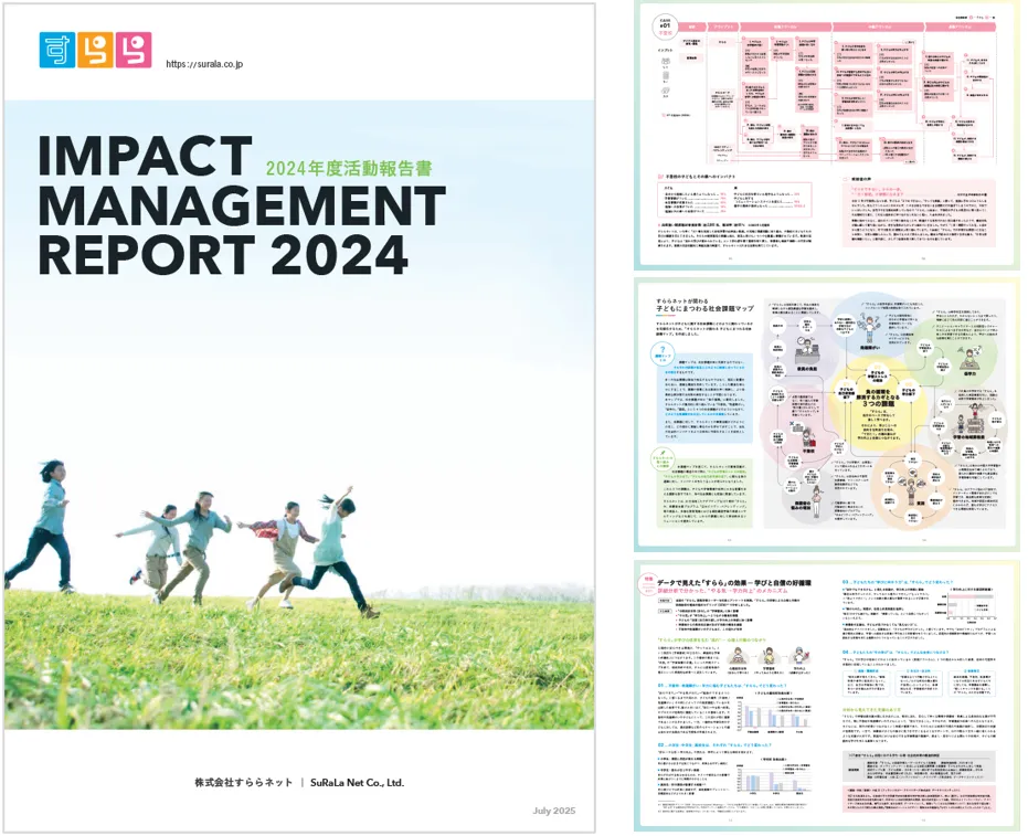 株式会社すららネットは、教育における社会課題への取り組みを具体的に示す『インパクトマネジメントレポート2024』を2025年7月に発行しました。本レポートでは、不登校、発達障がい、低学力、貧困といった教育分野の4つの主要な課題に対する同社の取り組みを、論理的に整理し、多面的に可視化しています。