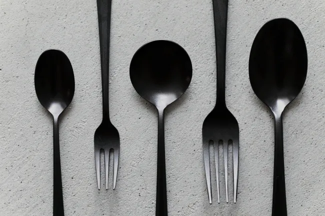 ステンレスの黒染め!新しい食卓を彩る「96[KURO]」カトラリー