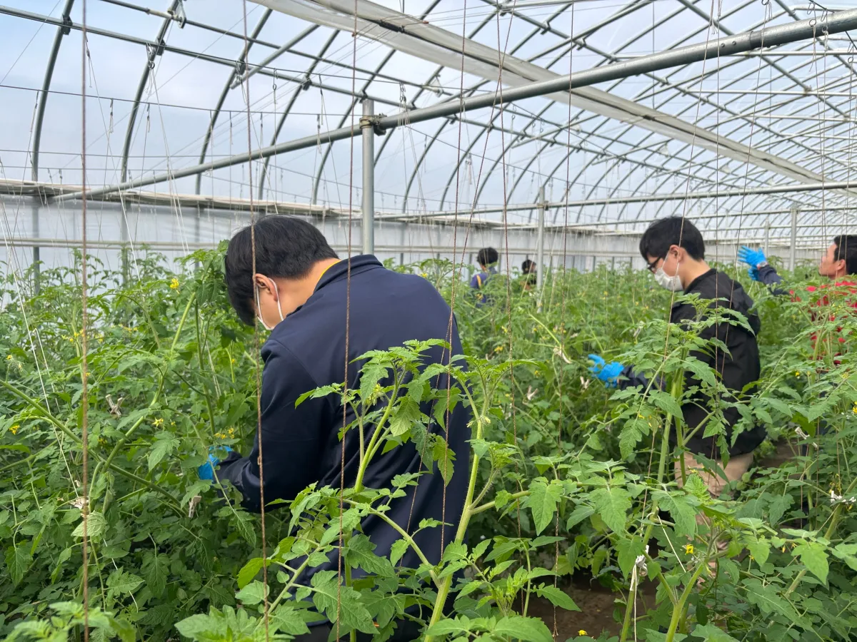その後、参加者はビニールハウスへ移動し、実際の作業を体験しました。こちらでは、摘葉や収穫など、ミニトマトの栽培に必須の作業を実践し、参加者同士での交流も生まれました。参加者からは「現場を知ることができて本当に良かった」「他の作物についてのプログラムもぜひ実施してほしい」との声が上がるなど、大変好評を博しました。