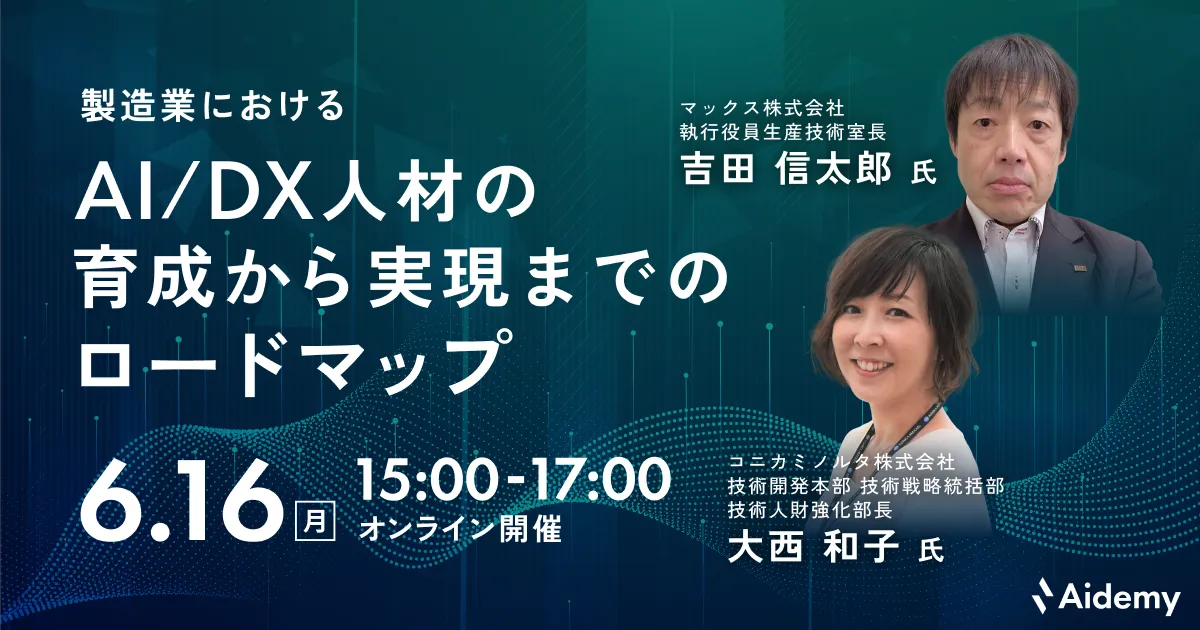 株式会社アイデミーが主催する「製造業におけるAI/DX人材の育成から実現までのロードマップ」。この貴重なセミナーは2025年6月16日(月)に開催され、DXとGX推進に取り組む企業が参加します。