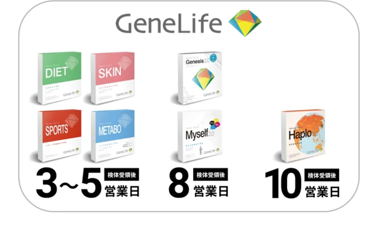 GeneLifeの検査キットは、大幅に所要時間を短縮しました。以下が新しい検査結果の提供タイムラインです: