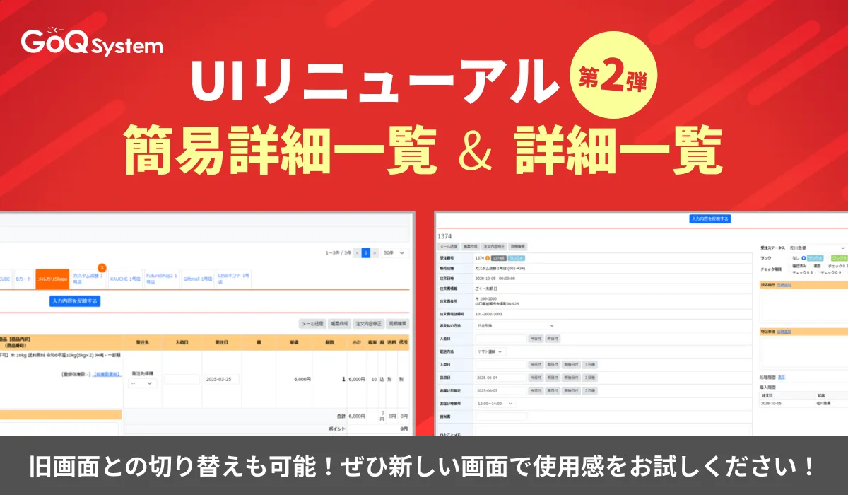 株式会社GoQSystemは、EC業務支援システム「GoQSystem」のUIリニューアルの第二弾として、「詳細一覧画面」と「簡易詳細画面」の新しいインターフェースを公開しました。これは、既存の「受注一覧画面」が刷新された第一弾に続くものであり、主に業務の効率化とユーザー操作の向上に重点を置いています。