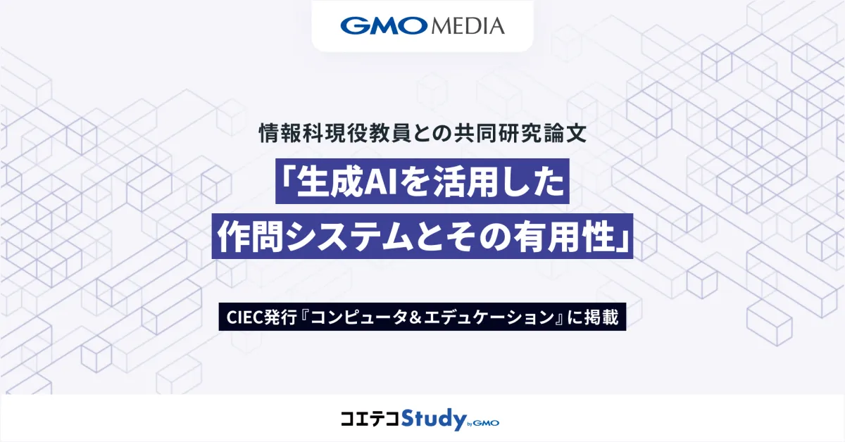 GMOメディア株式会社は、高校教員向け課題作成サービス「コエテコStudy byGMO」を活用し、生成AIによる作問システムに関する共同研究を行い、その研究結果を発表しました。この研究では、教員の作問負担の軽減だけでなく、生徒の学習効果の向上が確認されました。