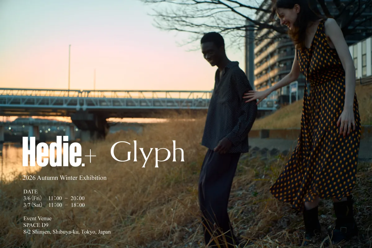 2026年の秋冬コレクションに向けた合同展示会が、東京・渋谷にて開催されます。参加ブランドはGlyph(グリフ)とHedie.+(エディクロス)。