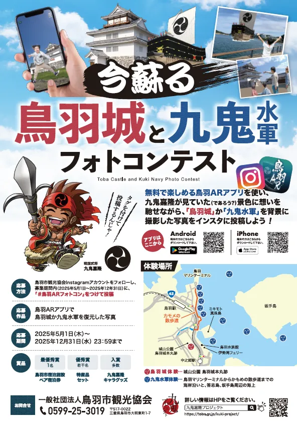 歴史と未来が交差するこのフォト体験で、あなた自身の「鳥羽AR×九鬼嘉隆」の世界を切り取ってみませんか?ぜひ、コンテストに参加してその魅力を楽しんでください。