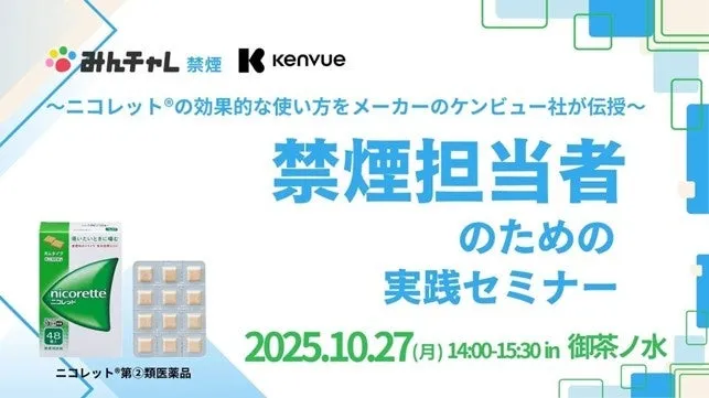 禁煙を目指す方々にとって、信頼できるサポートが必要です。そんな中、禁煙補助剤「ニコレット®」を提供するKenvue(ケンビュー)と、禁煙支援アプリ「みんチャレ®︎」を手がけるエーテンラボ株式会社が、2025年10月27日に共同でセミナーを開催します。このセミナーは東京・御茶ノ水で行われ、健康保険組合や企業の担当者を対象に、実践的な禁煙推進の知識を提供します。
