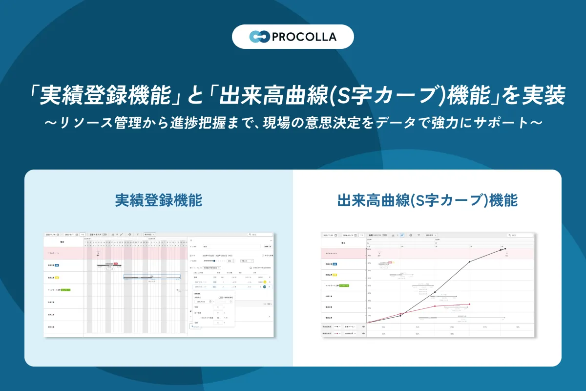 従来の工程管理では、計画と実績の差異を確認するためには、多くの手作業やデータ集計が必要でした。このプロセスは時間がかかり、現場監督が重要な施工管理業務に集中できない要因となっていました。そこで、PROCOLLAはこれらの業務を効率化するため、自動化・デジタル化を進め、現場監督が本来の業務に集中できる環境を整えることを目指しました。今回の機能追加により、現場の進捗状況を多角的に把握できるようになり、工事の「見える化」がより一層加速します。