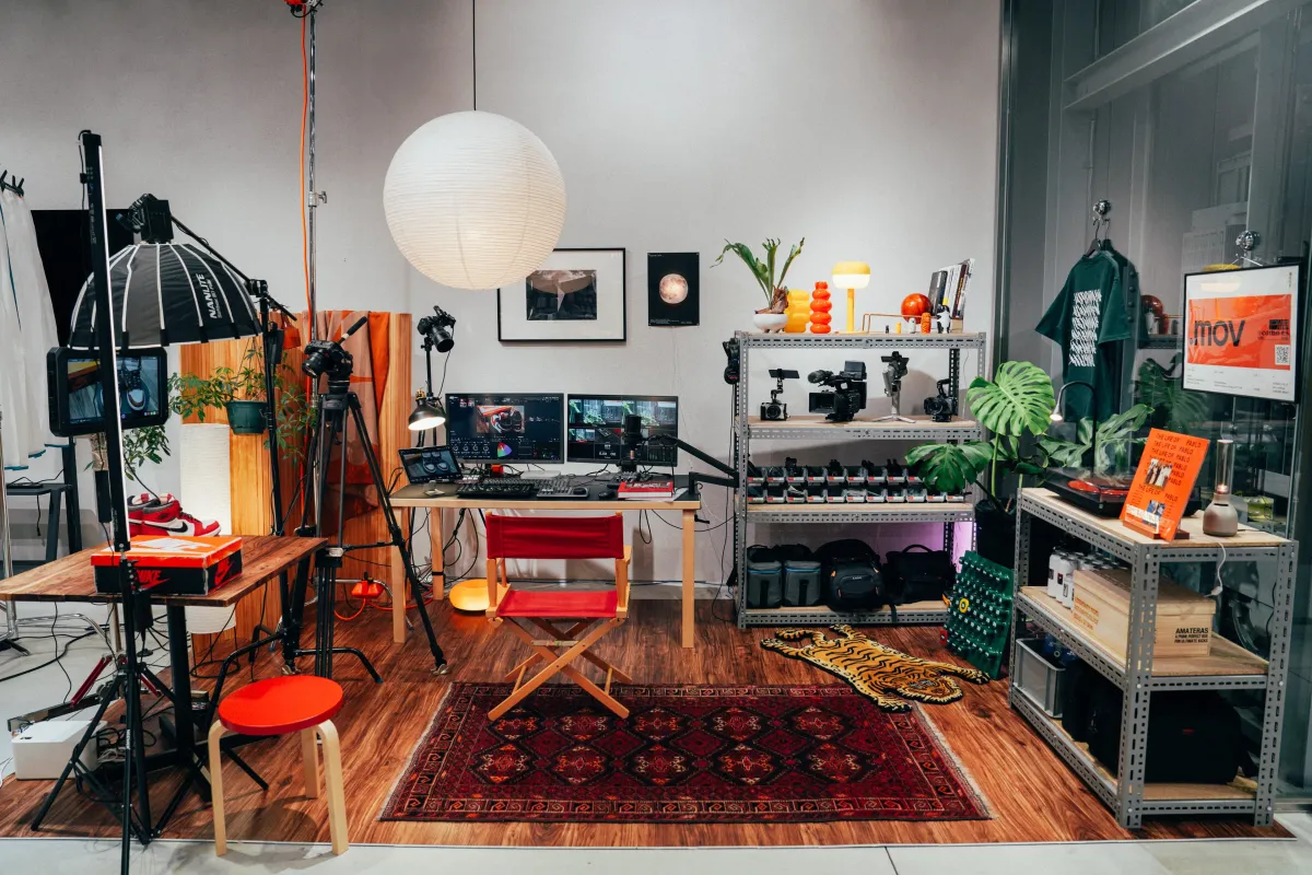 この空間を設計したのは、リーボの取締役であり映像クリエイターでもある園田和彦氏です。彼は自身の豊かな経験を活かし、「機材を購入したその先にあるクリエイターズライフを想像できる場所を作りたい」という思いを込めてスタジオのデザインを手掛けました。クリエイターである園田氏自身が持つ視点からは、リアルな制作環境が具現化されており、訪れる人が自身の未来に思いを馳せることのできる空間となっています。