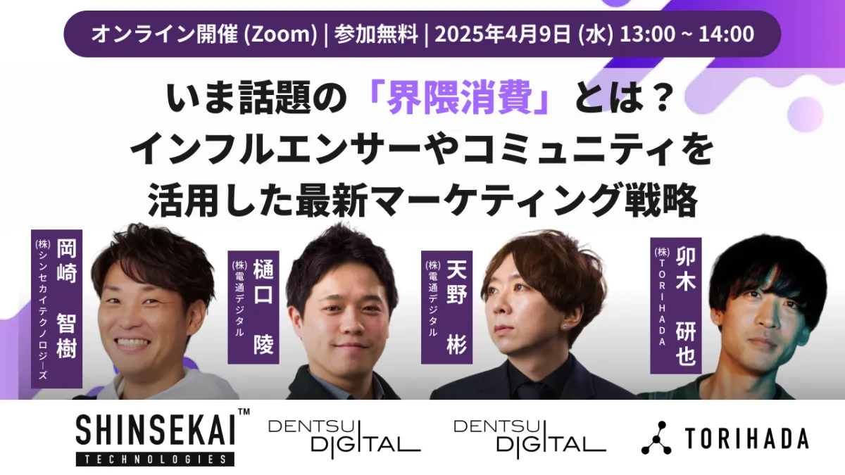 株式会社SHINSEKAI Technologiesが主催する特別なウェビナーが、2025年4月9日に開催されます。このウェビナーでは、いま話題の「界隈消費」について、インフルエンサーやコミュニティを活用した最新のマーケティング戦略が紹介されます。場はオンラインで行われ、参加費は完全に無料。市場の動向や消費者行動に興味がある皆様にとって、見逃せないイベントとなっています。
