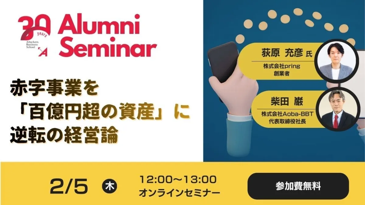 株式会社Aoba-BBTが創業30周年を迎えるにあたり、特別な対談セミナーが開催されます。このイベントには、株式会社pringの元代表取締役である荻原充彦氏が登壇し、彼の起業家としての成功哲学や背景について語ります。