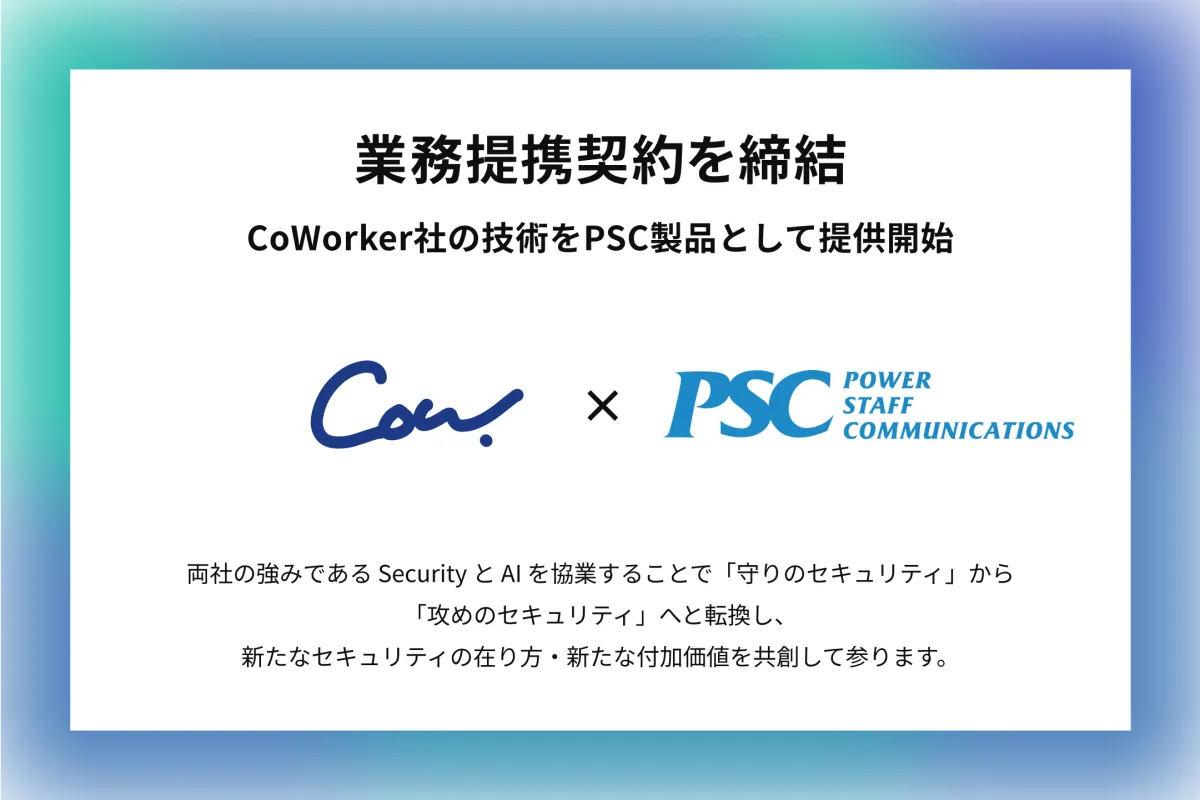 セキュリティの分野は、ますます厳しい状況となっています。サイバー攻撃は日々進化し、従来の「守る」セキュリティから「攻める」セキュリティへと進化する必要があります。CoWorker社はこの背景の中で、「Security×AI」をテーマにした革新的なソリューションを開発してきました。この度、長年の経験を持つPSC社との協業が実現し、両社が持つ技術の相乗効果によって新たなサービスが生み出されることが期待されています。