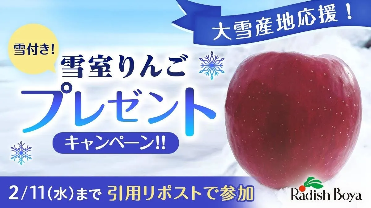 食品宅配サービス「らでぃっしゅぼーや」が、2026年1月30日から「雪付き雪室りんごプレゼントキャンペーン」を実施します。これは青森県の生産者を応援するための企画であり、SNSを通じて生産者へ向けた応援メッセージを募集しています。