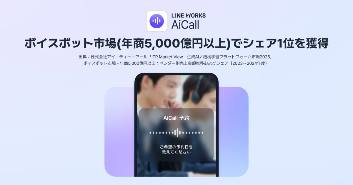 ビジネスの現場での効率化が進む中、LINE WORKS株式会社が提供する電話応対AIサービス「LINE WORKS AiCall」が、市場調査レポートによると、年商5,000億円以上のボイスボット市場でシェア1位を獲得しました。この成果は、AI技術を駆使した電話対応において、圧倒的な信頼性と実績を誇るからこそ実現したものです。