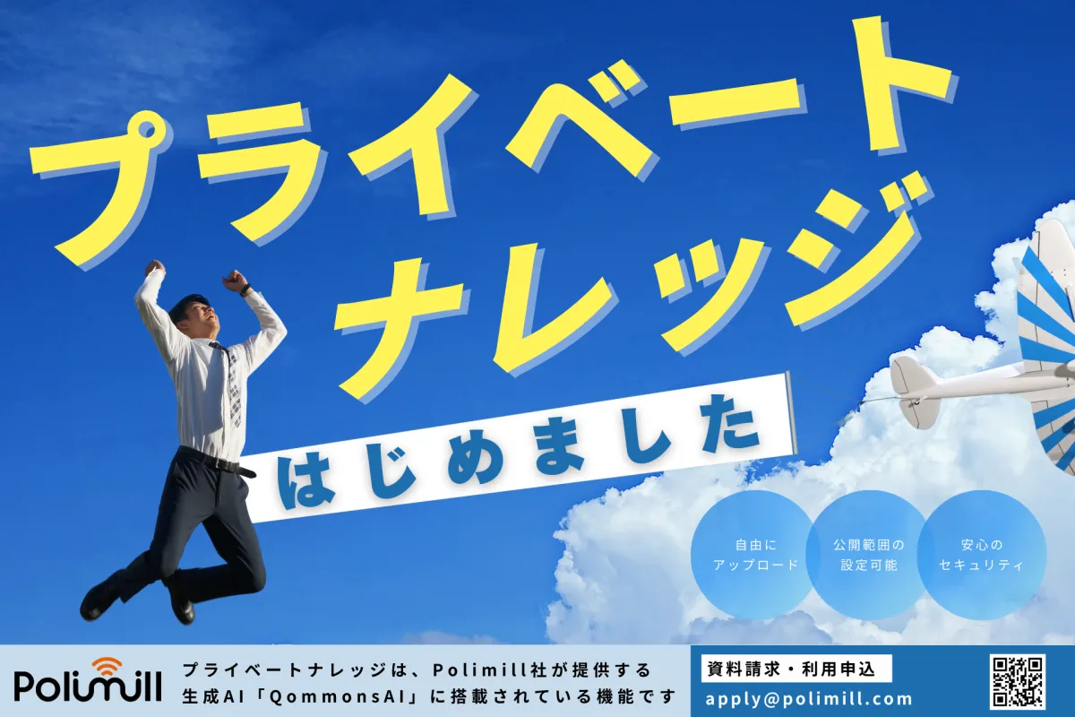 最新のAI技術を活用した新機能『プライベートナレッジ』が、Polimill株式会社が提供する生成AIサービス「QommonsAI」に追加されました。この機能は、自治体職員が業務に必要な情報や資料を安全に管理し、AIと対話しながら迅速な意思決定をサポートすることを目的としています。