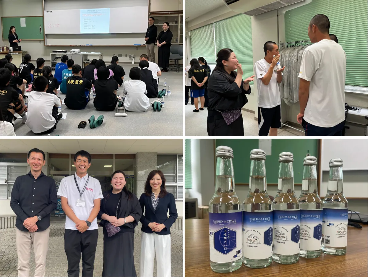 最後のセッションでは、生徒たちは「土岐商サイダー」を用いて模擬接客を実施し、役割をアサインされました。販売員、お客様、アドバイザーに分かれて、学んだことを実践に移したのです。授業で得た知識がどれほど活かせるのか、実践を通じて確認する機会となりました。
