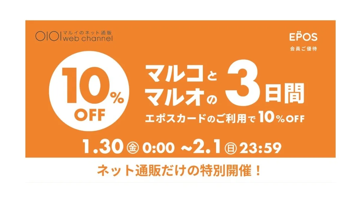2026年1月30日から2月1日まで、株式会社丸井がネット通販「マルイウェブチャネル」にて、エポスカードを持つ会員向けの特別キャンペーン『マルコとマルオの3日間』を実施します。期間中には、エポスカードでのお買い物が10%OFFで楽しめるというお得な内容。