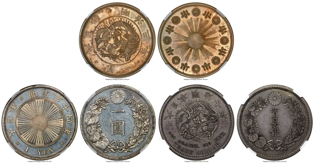 オークションでの出品コインの中には、以下の3つの日本の試鋳銀貨があります: