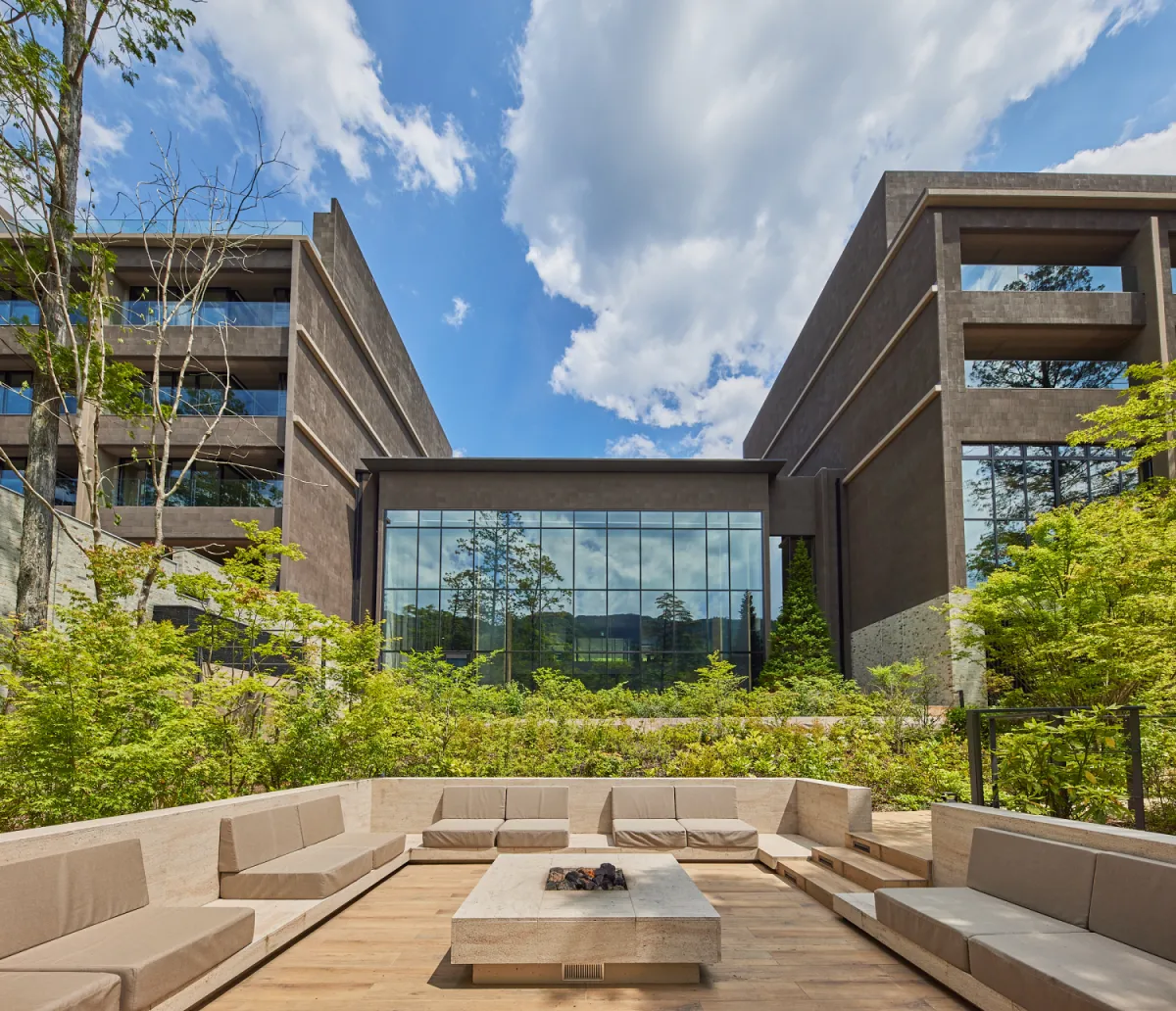 「鬼怒川渓翠」は、環境への配慮も徹底しています。建材には地元北関東から東北エリアの国産石材をふんだんに使用し、消費電力はすべて再生可能エネルギー由来でまかなっています。