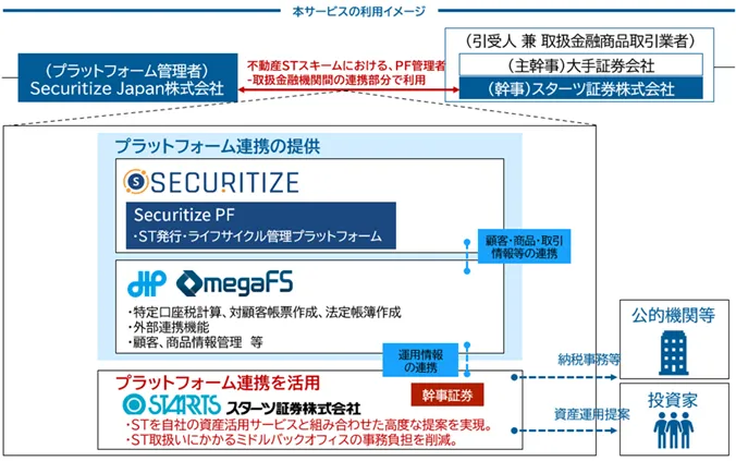 今回、この新しいプラットフォームを利用する第一号としてスターツ証券が名前を連ねました。スターツ証券は、不動産セキュリティ・トークンの管理を開始し、すでに発表された「スターツ・アセット・トークン~両国・千鳥町~」において顧客管理を行っています。この取り組みによって、スターツ証券は「金融から不動産まで」という幅広いサービスの中で、不動産セキュリティ・トークンをシームレスに統合し、顧客に対して総合的な資産運用の提案が可能になりました。