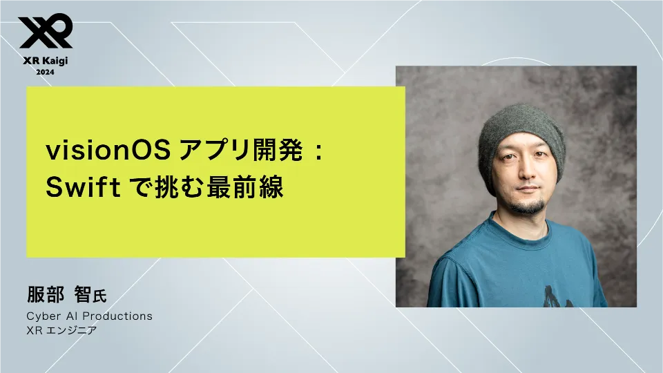服部智エンジニアは、AbemaTVでiOSやNintendo Switch向けのアプリ開発を経験し、現在はバーチャルプロダクションの開発にも従事しています。これまでにiOSDCやtry! Swift、XR Kaigi、AWE USA、Let's visionOSなど、数々のイベントでパネリストや講演者として登壇しており、バーチャル領域での豊富な知識と経験を持つ専門家です。