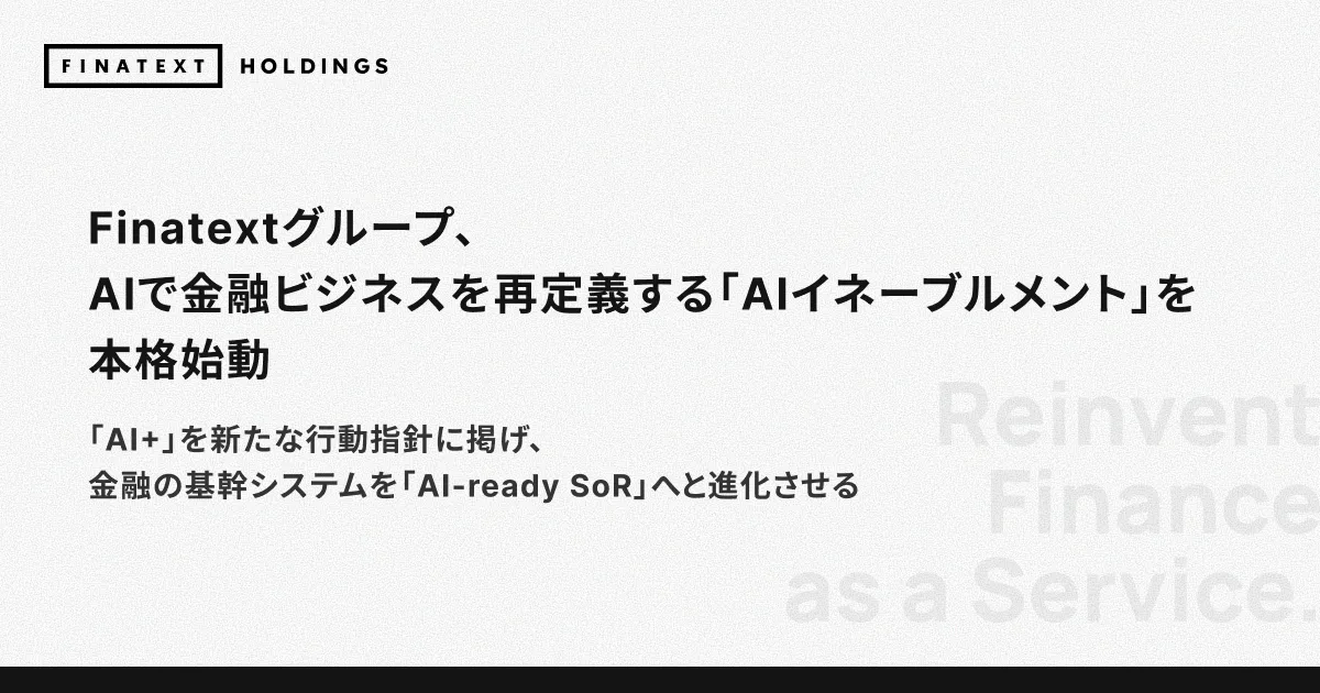 Finatextグループは、SoR(System of Record)の構築に力を入れ、AI時代に即した競争力を追求しています。「AI+」を基に金融実務を再設計し、次世代金融インフラのスタンダードを創造することに全力を注ぎます。これからも挑戦を続け、AIで金融を革新する企業となるための一歩を踏み出していきます。