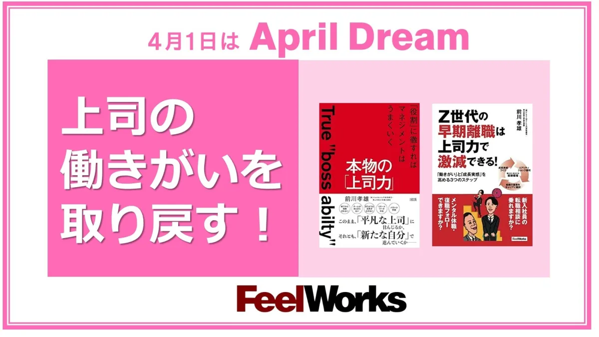 FeelWorksは、現代の上司たちが活き活きとした職場環境を作り出すための様々な支援を行い、彼らが育成する次世代の人材への影響を重視しています。夢を発信する「April Dream」にも賛同し、多くの人が自分の夢を見つけられるよう支援していきます。