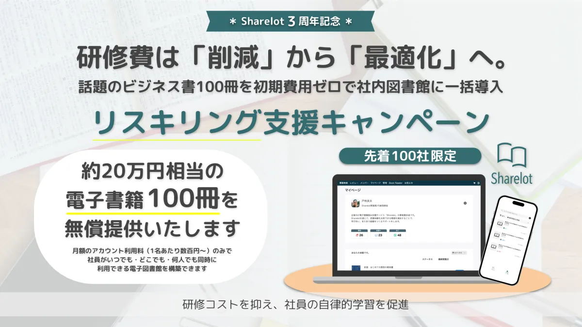 株式会社MOCHIが提供する「Sharelot(シェアロット)」は、企業向けの電子書籍読み放題サービスです。このたび、同社のサービス公開3周年を記念し、2026年1月14日から新たなリスキリング支援キャンペーンがスタートします。このキャンペーンにより、高まる研修コストを最適化し、社員の自律的な学びを後押しすることを目指しています。