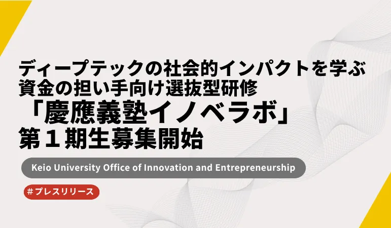 慶應義塾大学は、ディープテックの社会における影響を深く学べる専門的な研修プログラム「慶應義塾イノベラボ」の第1期生を募集しています。このプログラムは、少人数制で選抜された参加者が集まり、ディープテックの成長に寄与するリーダーとしてのスキルを実践的に磨くことを目的としています。