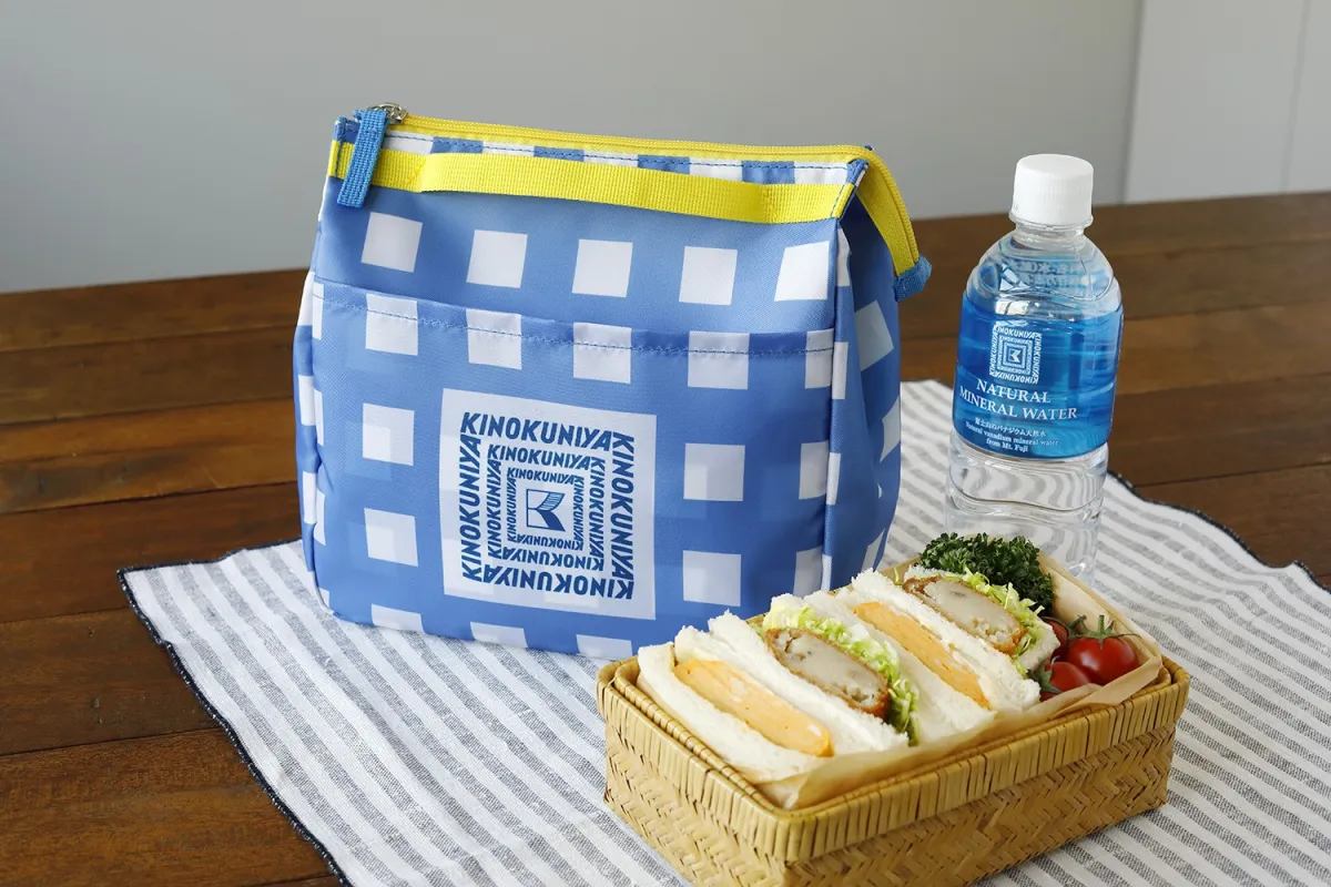 このポーチは、昨年のバージョンよりもさらに使いやすく進化しました。特に目を引くのは、まちの広さです。たっぷりのサイズ感により、ビッグなお弁当箱と一緒に500mlのペットボトルや保冷剤を余裕で収納できる設計になっています。持ち手が付いているため、ちょっとした買い物にも便利ですし、内側に施された保冷シートは柔軟性があるため、使用しない時はコンパクトに折りたためます。