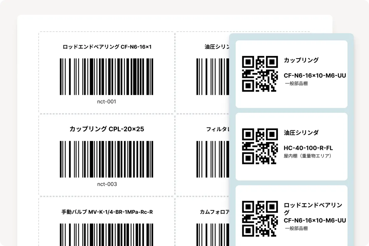 これまでnancoはスマートフォンを用いたバーコード読み取りに対応していましたが、今回のアップデートにより、商品のアイテム情報から直接バーコードやQRコードを生成し、それをラベルとして印刷・運用できるようになりました。この変更は、在庫管理のプロセスをシンプルかつ効果的にするために設計されています。