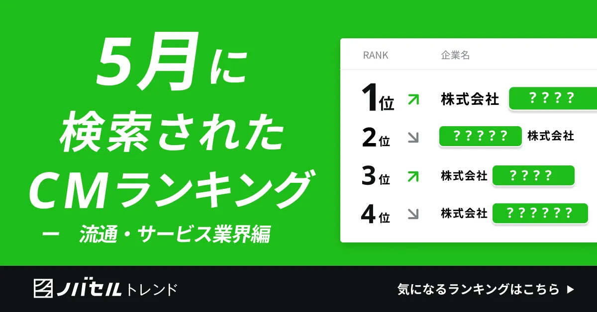 2025年5月の流通・サービス業界におけるCM指名検索スコアランキングでは、以下の10作品が上位にランクインしました。