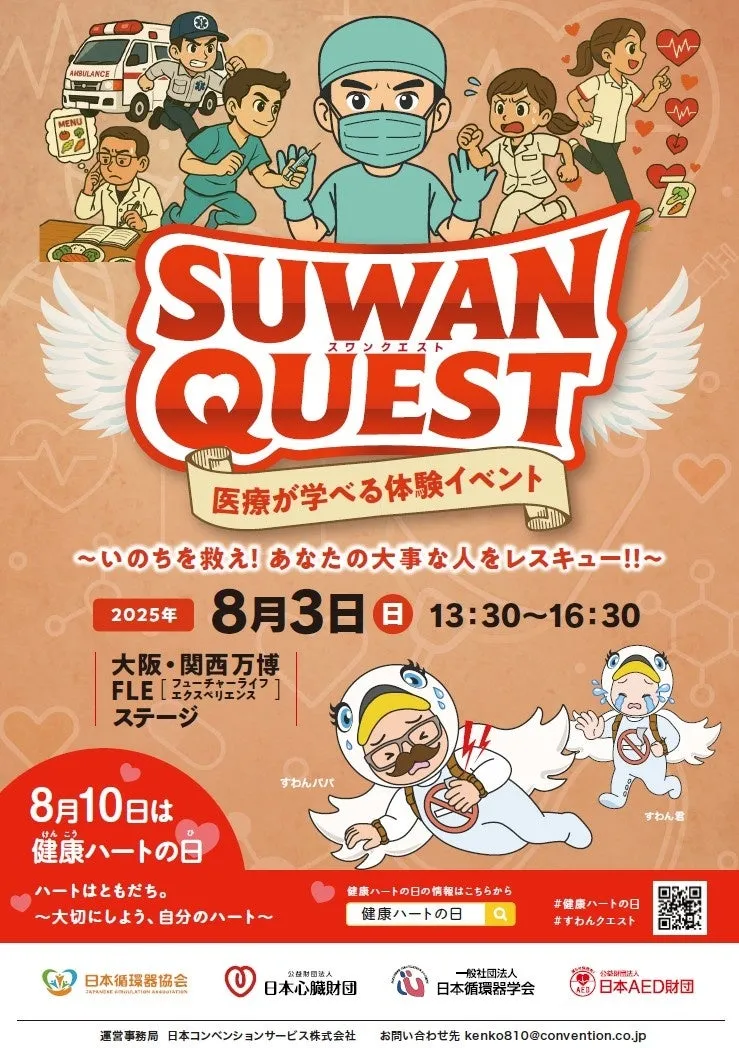 2025年8月、待望の大阪・関西万博が開催されます。このイベントでは、小中学生を対象とした医療について学べる体験イベント「SUWAN QUEST 〜いのちを救え!あなたの大事な人をレスキュー!!」が行われます。これは、健康についての知識を身につける貴重な機会であり、子供たちが命の大切さを学ぶ場として期待されています。