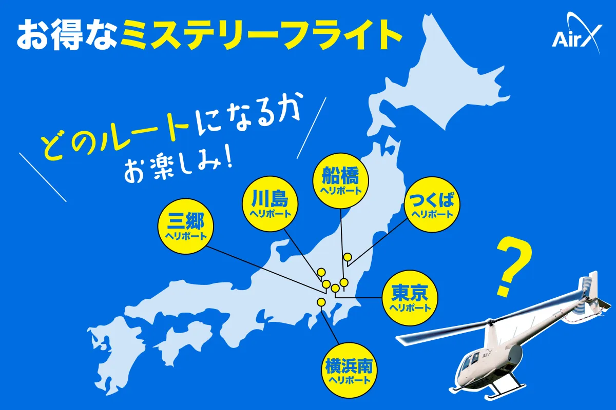 株式会社AirXが新しく始めた「ミステリーフライト」は、税抜15,000円というお手頃価格でヘリコプターのフライトを実現するサービスです。この新しいフライトプランは、空からの眺望や移動を楽しみたいさまざまな方に最適な選択肢を提供します。