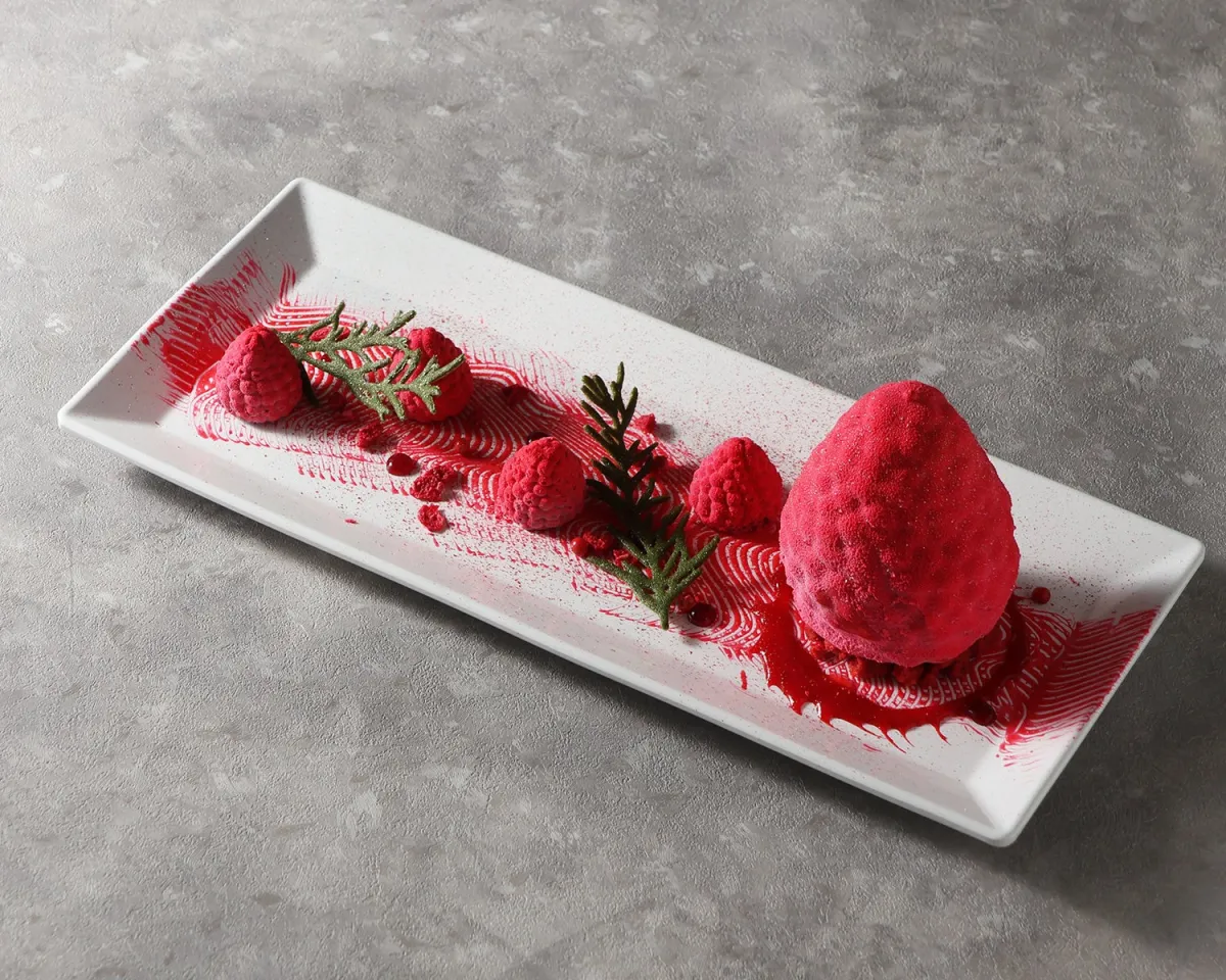 会場では、彼が目の前で仕上げるスペシャルデセールを楽しめるライブパフォーマンスや、バレンタインシーズン限定のショコラコレクションが用意されています。中でも注目すべきは、フランボワーズをテーマにしたデセールで、ムースとボンボンショコラが組み合わさった作品です。