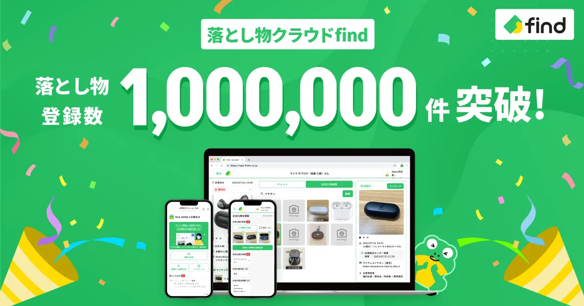 株式会社findが提供する落とし物クラウドサービス「find」が、このたび登録された落とし物の件数が100万を超えたことが発表されました。このサービスは、鉄道会社や百貨店を中心に全国で24社、約2300ヶ所で導入されており、日々多くの落とし物が登録されています。これにより、同サービスの認知度や利便性が高まってきたことが背景にあると考えられます。