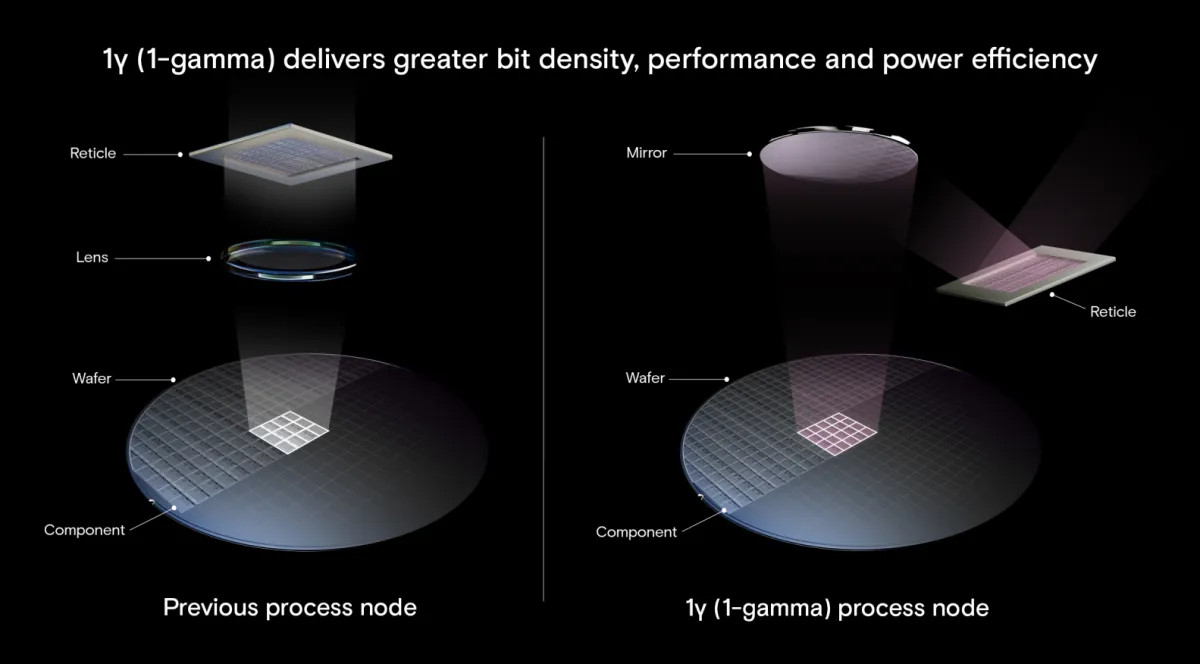 さらに、EUV(極端紫外線)露光技術、設計の最適化、革新のプロセス技術の導入により、1γノードではウエハ毎のビット数が30%増加しました。これにより、メモリ供給の効率を大きく拡張することが可能となり、企業のニーズに応える強力なサポートを提供できるようになります。