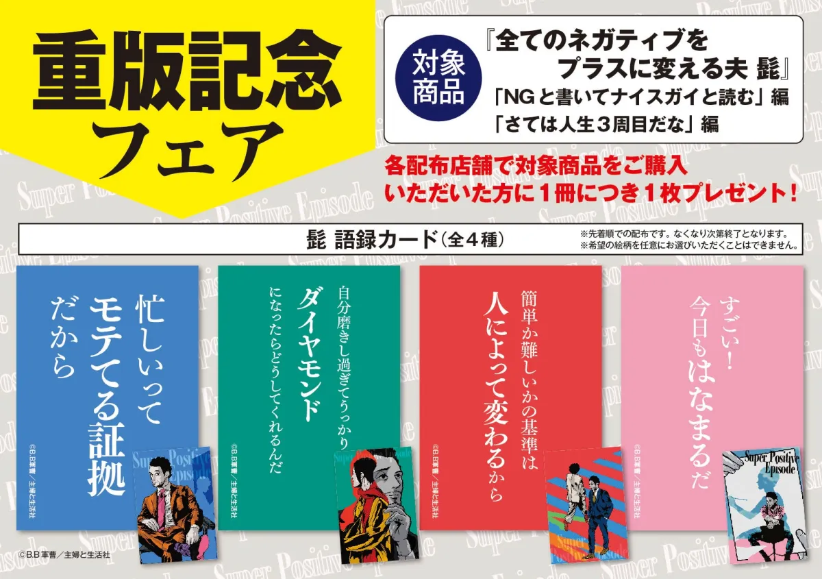 『髭 語録カード(全4種)』は無くなり次第終了となるため、お早めに書店での購入をおすすめします。このコミックを通じて、ネガティブな思考が変わり、皆さんの日常が彩り豊かになることを願っています。