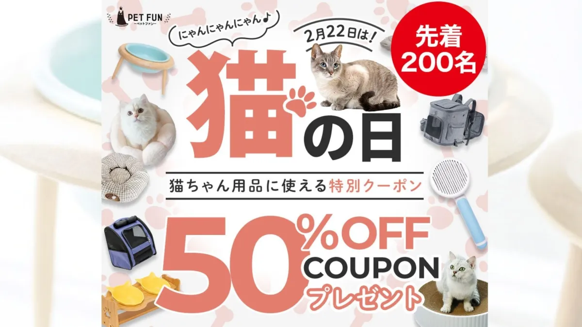 この特別セールは、2月22日の00:00から23:59まで行われます。50%OFFのクーポンの他、通常の20%OFFクーポンも用意されており、こちらは枚数に制限がありません。猫の日を利用して、愛猫に必要なアイテムをお得に手に入れるチャンスです。